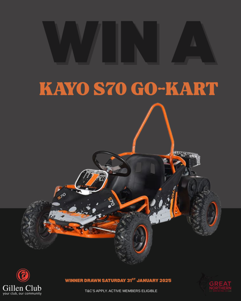Swipe your members card when you purchase at the bar or bistro for your chance to win a Kayo S70 Go-Kart worth $1,999